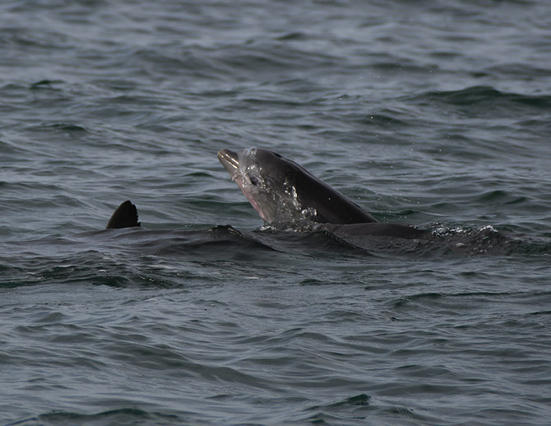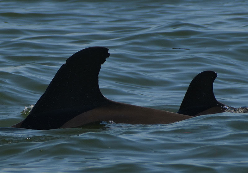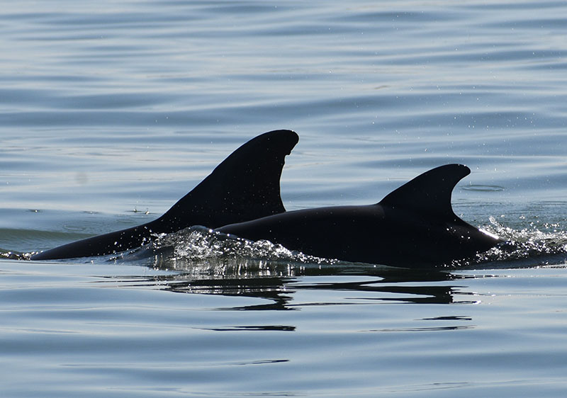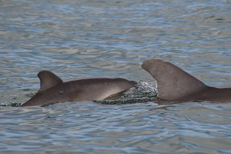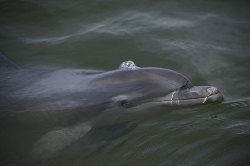 This is SKE3, who we first observed on Oct. 27. Mom is 1092, also known as Skeeter. SKE3 is the grandcalf of F109, also known as Scooter, and the great-grandcalf of FB79, Vespa, who had given birth to 11 calves over her 43 years. Sadly, Vespa and many of the dolphins in her lineage exhibit unhealthy behaviors like stalking boats, bridges and piers looking for handouts from humans. By the way, that “lump” on SKE3’s back is a splash of water caught at a shutter speed of 1/1250th of a second!